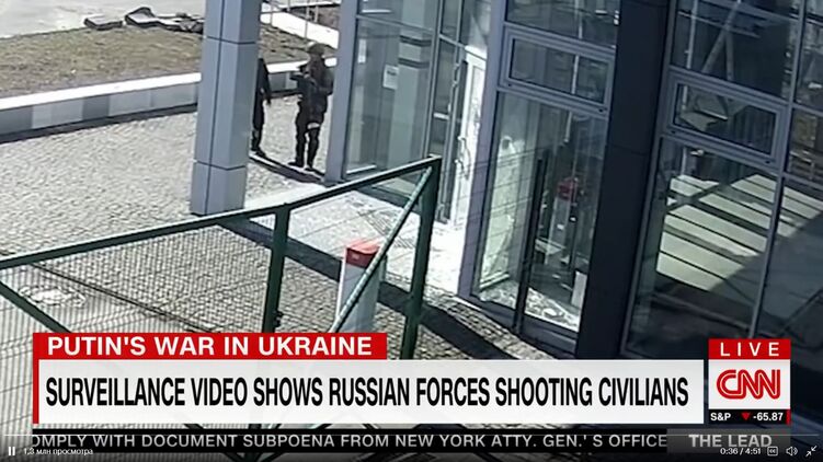 11 мая американский телеканал CNN опубликовал видео расстрела мирных жителей под Киевом. Это запись с камер наблюдения в автосалоне от 16 марта.