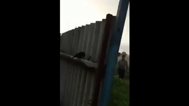 На ролике видно, как снаряды летят по гражданскому населению, а люди в испуге разбегаются и с криками прячутся в доме.
