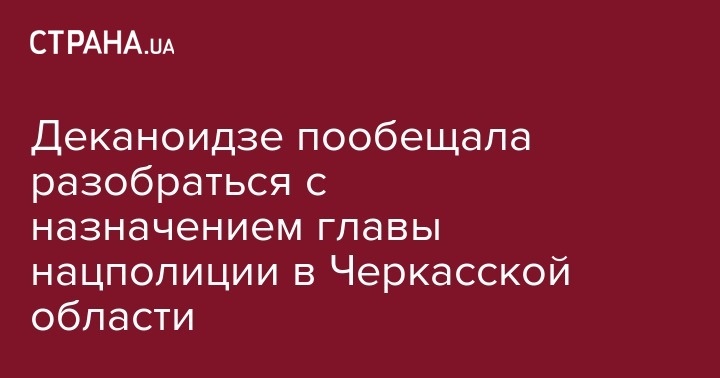 Глава Национальной полиции Украины Хатия Деканоидзе пообещала принять решение в ситуации с назначением нового главы полиции Черкасской области, приняв во внимание мнение общественности, сообщает ZN.UA.
