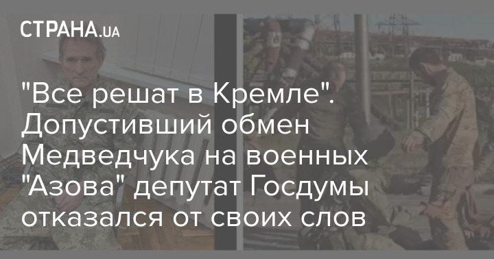 "Все решат в Кремле". Допустивший обмен Медведчука на военных "Азова" депутат Госдумы отказался от своих слов
