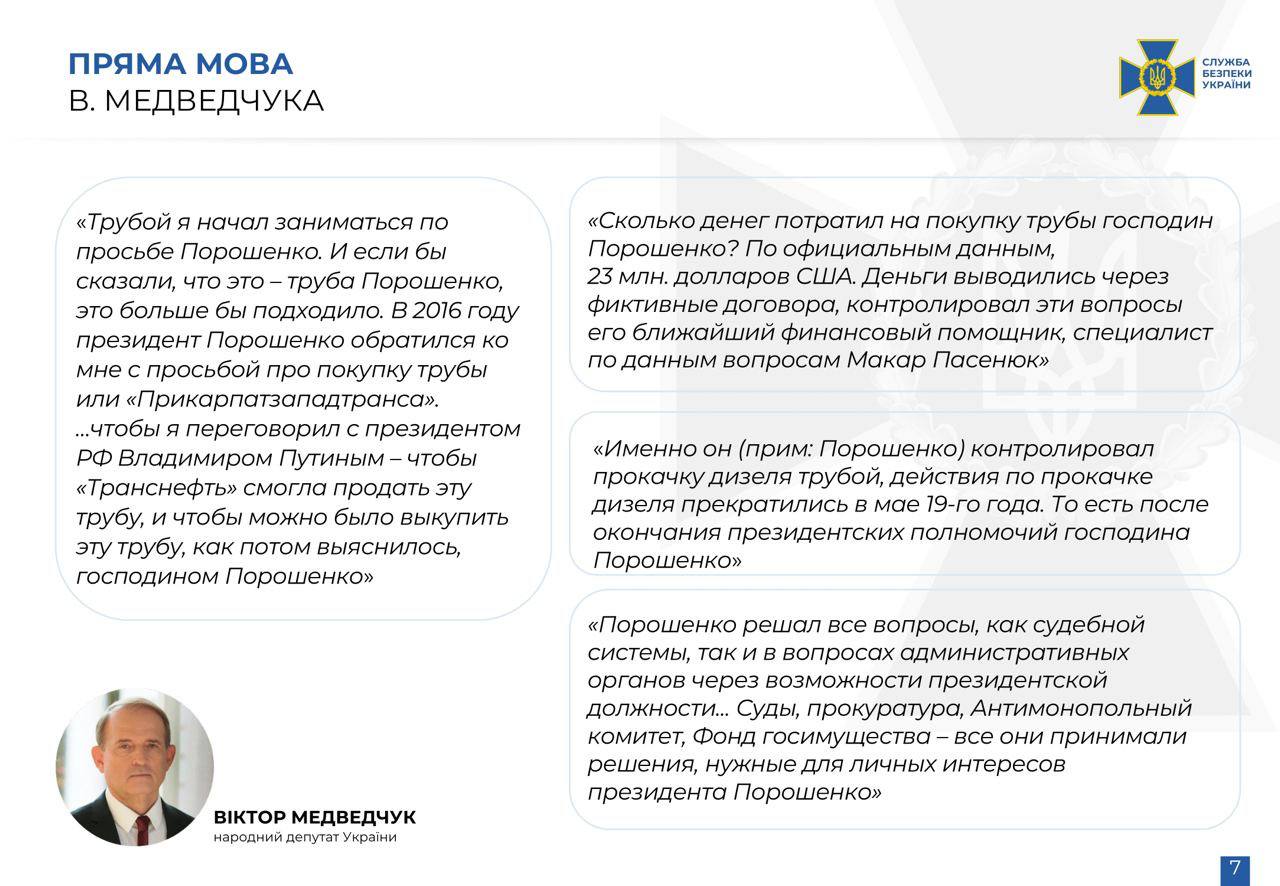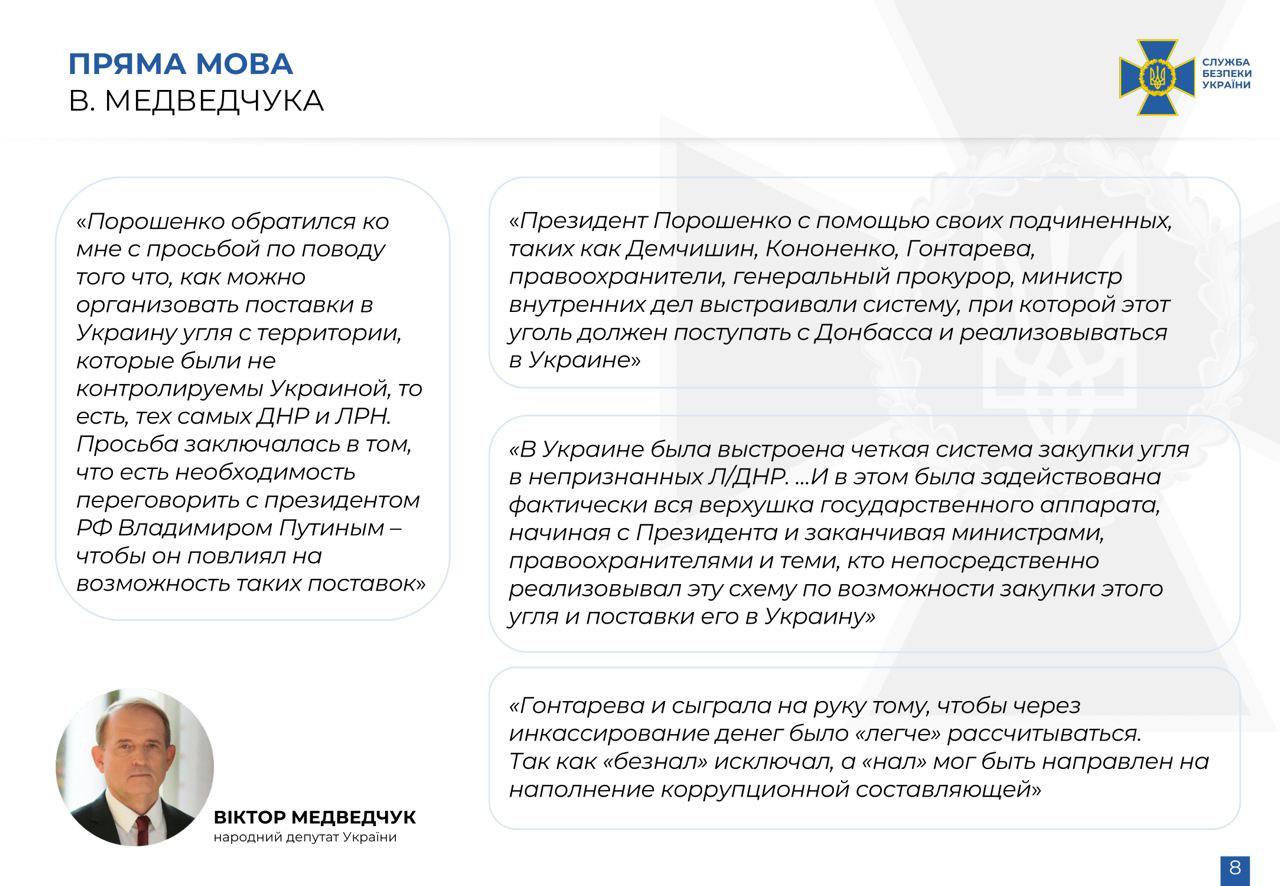 А вот показания Медведчука против Порошенко и описание всего этого дела на слайдах СБУ.
