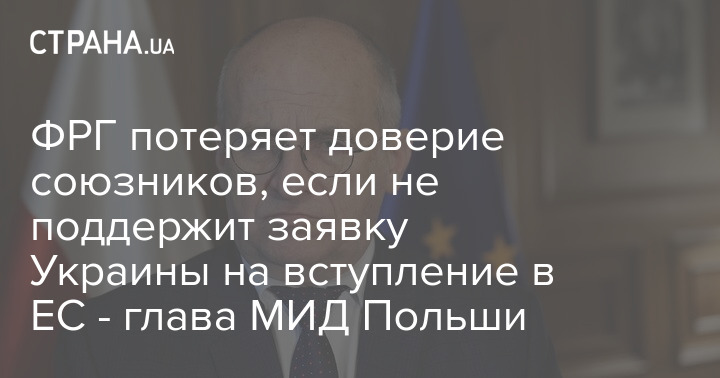 ФРГ потеряет доверие союзников, если не поддержит заявку Украины на вступление в ЕС - глава МИД Польши