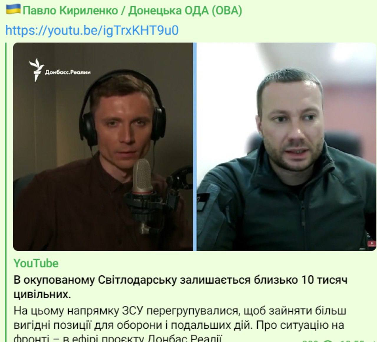 По данным на 2021 год, в Светлодарске проживали 11,3 тысячи человек, то есть, по информации Кириленко, практически все население осталось в городе.