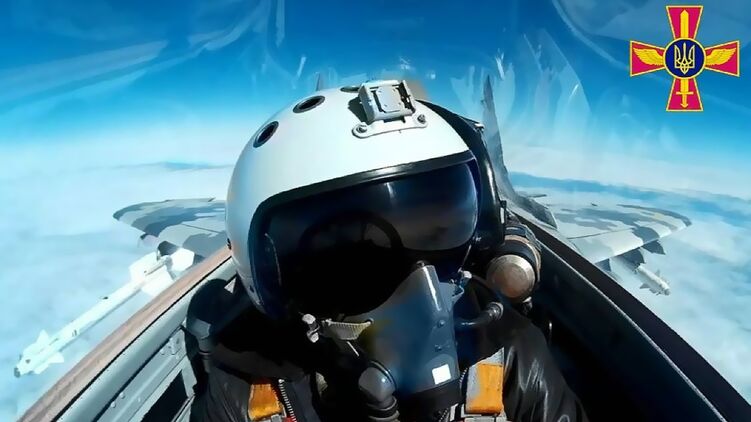 Украинский истребитель МиГ-29 сбил вражески истребитель в небе над Херсоном.