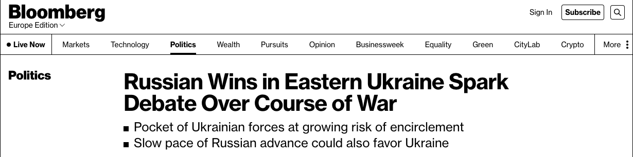 Продвижение России на Донбассе вызывает пессимизм на Западе, что отражено в заявлениях, подобных призыву экс-госсекретаря США Генри Киссинджера закрепить нейтральный статус Украины.