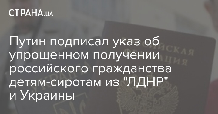 Президент России Владимир Путин подписал указ об упрощенном приеме детей-сирот из "ДНР" и "ЛНР", а также из Украины в российское гражданство.