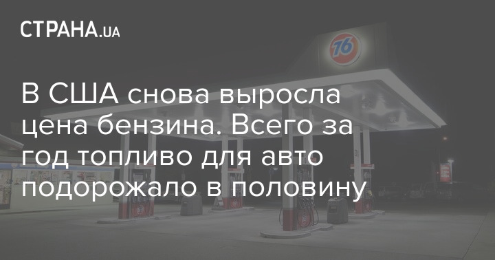 Цена бензина на автозаправках в США 30 мая вновь выросла, достигнув 4,62 доллара за один галлон (3,785 литра). Прирост за год составил 1,57 доллара (51%).