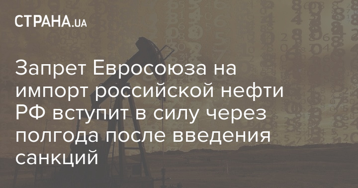 Запрет Евросоюза на импорт российской нефти РФ вступит в силу через полгода после введения санкций