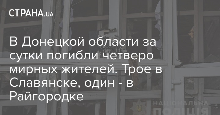 Сегодня погибли четверо мирных жителей Донецкой области – трое в Славянске после того, как враг нанес ракетный удар, повредив школу и 7 многоэтажек, и один в Райгородке.
