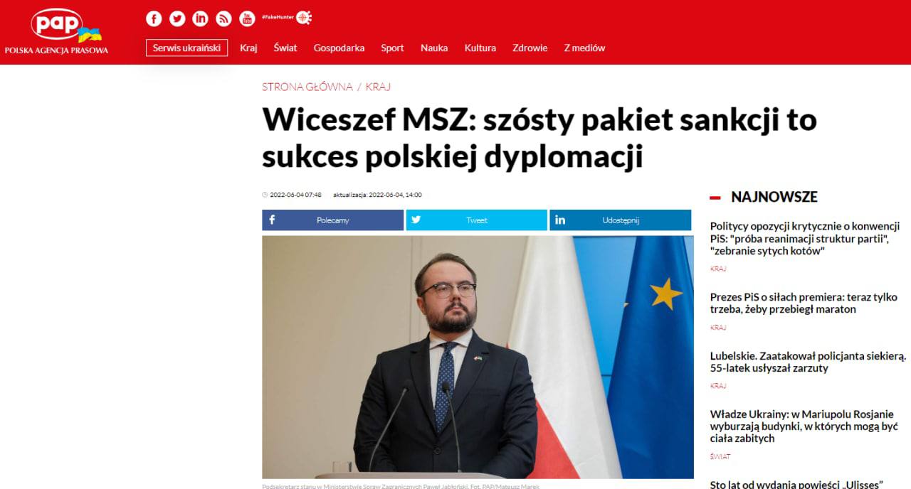 17.21 Евросоюз уже начал работать над следующий пакетом санкций, которые призваны значительно сократить возможности Кремля продолжать войну против Украины. Об этом заместитель министра иностранных дел Польши Павел Яблонский сказал в интервью PAP.