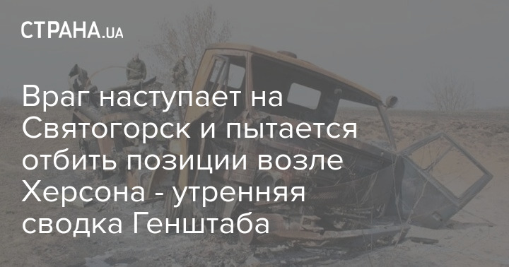 По данным Генштаба, противник ведет наступление на Святогорск, пытаясь вытеснить ВСУ на правый берег Северского Донца.