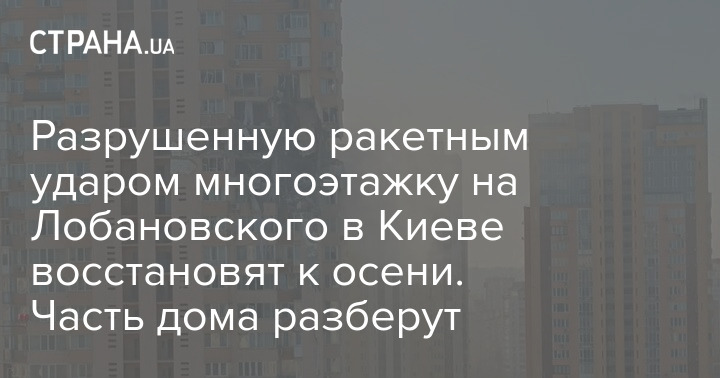 КГГА планирует до середины осени восстановить многоэтажный дом на проспекте Лобановского в Киеве, в который попала российская ракета на третий день полномасштабного вторжения. В нем также придется разобрать верхние этажи.