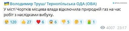 В городе Чортков Тернопольсокй области после сегодняшнего "прилёта" отключили газ.