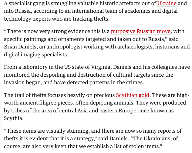 Дэниелс со своими коллегами следил из лаборатории в Вирджинии за варварскими действиями России и обнаружил, что россияне особенно охотятся за скифским золотом.