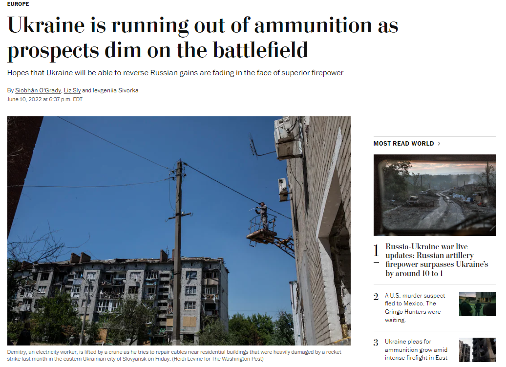 При этом, как отмечает The Washington Post, западная помощь поступает слишком медленно и не в состоянии оказать влияние на продвижение российских сил на Донбассе.
