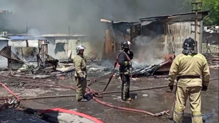 Под огонь попал Майский рынок в Буденовском районе. Скриншот из видео
