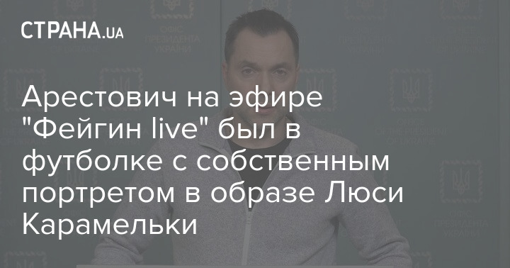 Советник главы Офиса президента Алексей Арестович на эфире "Фейгин live" 14 июня был в футболке с собственным портретом.