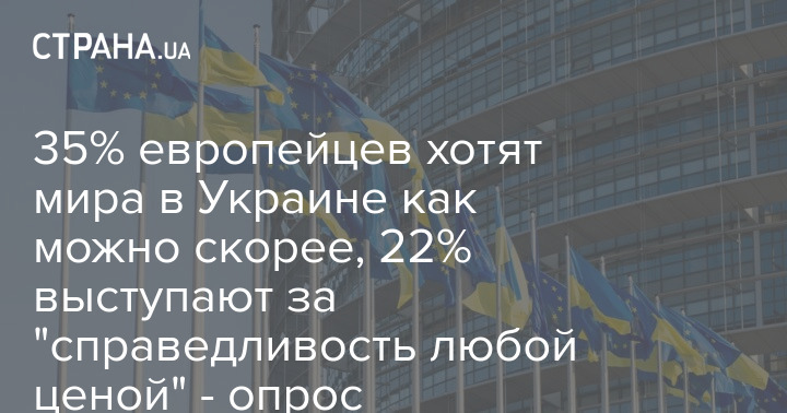 35% европейцев хотят "мира в Украине как можно скорее", тогда как 22% хотят "справедливости любой ценой", то есть войны до победного конца.