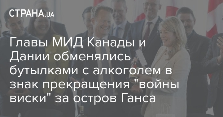 Канада и Дания после многолетних споров прекратили "войну виски", подписав договор об урегулировании территориального спора вокруг арктического острова Ганса (площадью всего 1,3 кв км). Главы МИД обменялись бутылками с алкоголем.