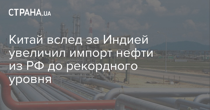 Китай вслед за Индией рекордно нарастил импорт российской нефти. В прошлом месяце импорт сырой нефти из РФ вырос на 55% по сравнению с маем 2021-го.