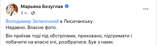 Появилось фото Зеленского в Лисичанске. Безуглая уверяет, он там побывал недавно