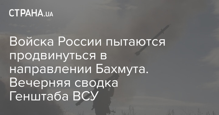 Войска России пытаются продвинуться в направлении Бахмута. Вечерняя сводка Генштаба ВСУ