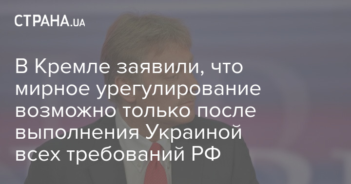В Кремле заявили, что мирное урегулирование возможно только после выполнения Украиной всех требований РФ