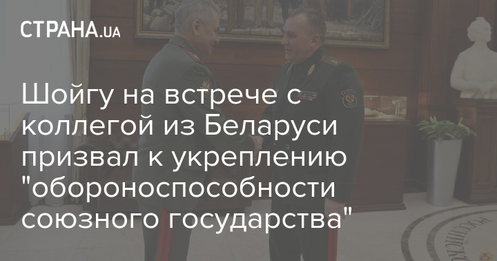 Министр обороны РФ Сергей Шойгу на встрече с министром обороны Белоруссии Виктором Хрениным в Москве заявил о необходимости "срочно укреплять обороноспособность союзного государства". Об этом пишут российские СМИ.