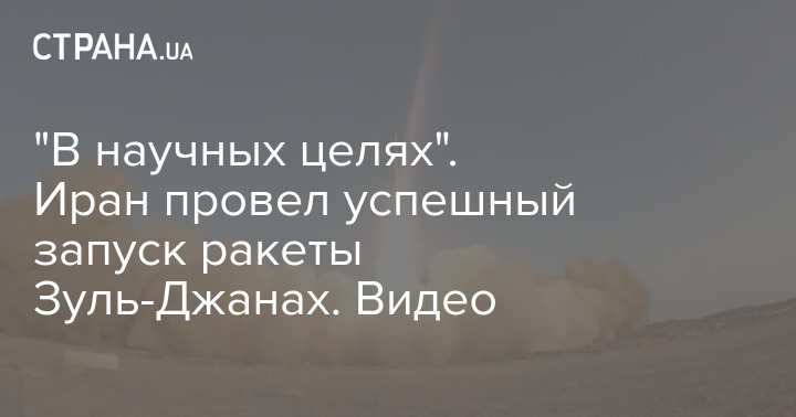 Иран провел успешный запуск ракеты-носителя под названием "Зуль-Джанах". Запуск был проведен в научных целях, сообщили в министерстве обороны страны.