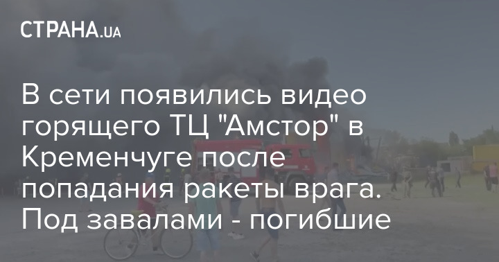 В сети появляется много видео из Кременчуга, где Россия сегодня нанесла удар по переполненному людьми торговому центру "Амстор".