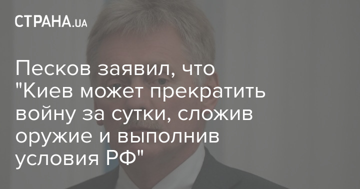 Песков заявил, что "Киев может прекратить войну за сутки, сложив оружие и выполнив условия РФ"