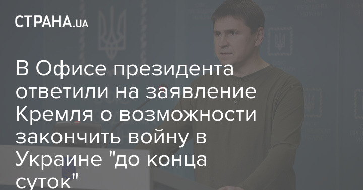 В Офисе президента Украины отреагировали на заявление Кремля о возможности Киева закончить войну в Украине "до конца суток".