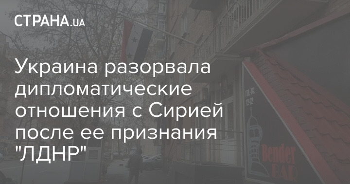 Украина разорвала дипломатические отношения с Сирией после признания последней "независимости "ДНР" и "ЛНР". При этом консульства остаются работать. Об этом сообщает МИД Украины.