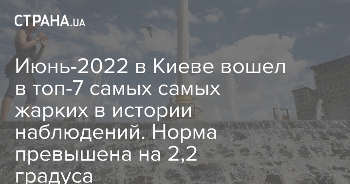 Прошедший июнь в Киеве выдался очень жарким, среднемесячная температура воздуха была на 2,2 градуса выше нормы. Таким образом июнь 2022-го стал седьмым самым теплым за 142 года метеонаблюдений.
