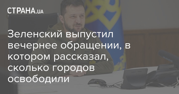 Зеленский выпустил вечернее обращении, в котором рассказал, сколько городов освободили
