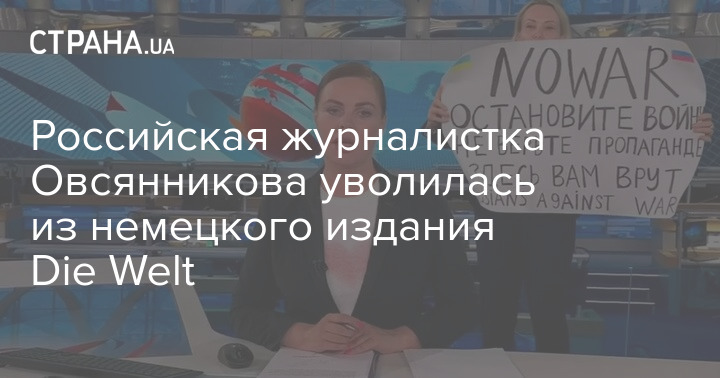 Бывший редактор российского Первого канала Марина Овсянникова, получившая в апреле работу в немецком издании Die Welt, уволилась оттуда.