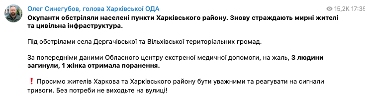 Олег Синегубов сообщил об очередном ударе по Харьковской области. Фото: Facebook