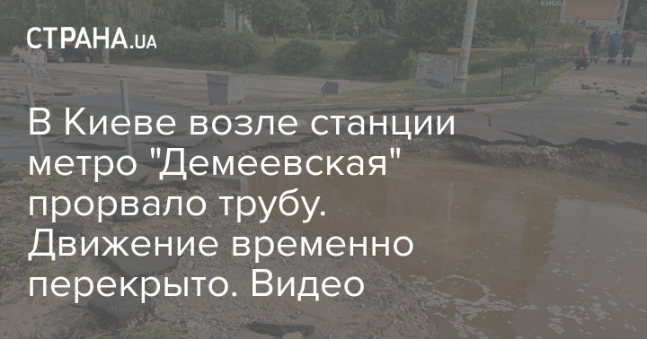 В Киеве возле метро "Демеевская" произошел прорыв трубы, в результате образовался гейзер.