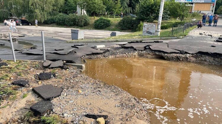 В Киеве возле станции метро прорвало трубу. Фото: Патрульная полиция Киева