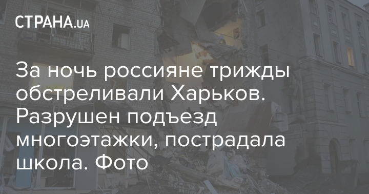 Прошлой ночью Харьков трижды подвергся ракетному обстрелу. Одна из ракет частично разрушила шестиэтажку в центре города, еще две ракеты попали на территорию складского помещения в Основьянском районе и здание школы в Слободском районе города.