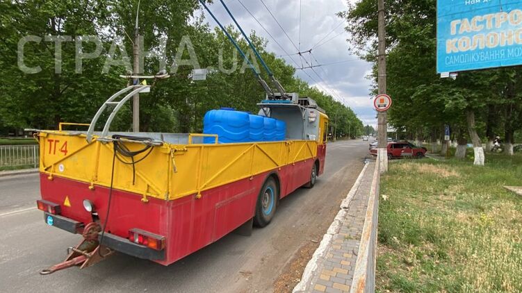 Сейчас питьевую воду в городе развозят на специальных троллейбусах - "кабриолетах".