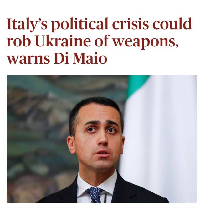 12.29 Глава МИД Италии Луиджи Ди Майо предупредил, что отставка премьера Марио Драги грозит лишить Украину военной поддержки Италии. Об этом он сказал в телефонном интервью изданию Politico.