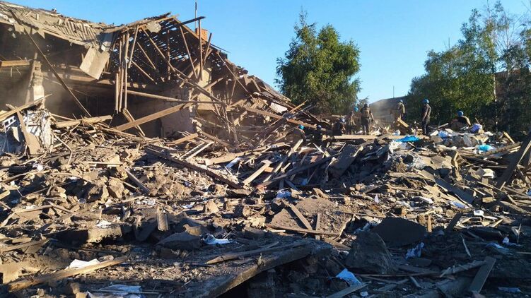 Снаряд уничтожил здание. Фото: facebook.com/DSNSDon