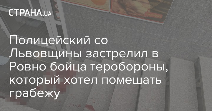 В центре Ровно мужчина застрелил бойца теробороны, пытавшегося помешать грабежу пункта обмена валют. Убийца скрылся, на его поиски бросилась вся полиция Ровенщины. Когда его поймали, оказалось, что это полицейский из соседней области.