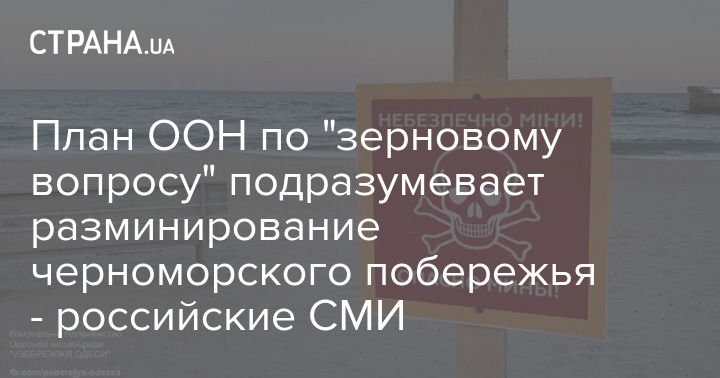План ООН по вывозу украинского зерна подразумевает разминирование побережья Черного моря. Об этом сообщает "РИА Новости" со ссылкой на источник.