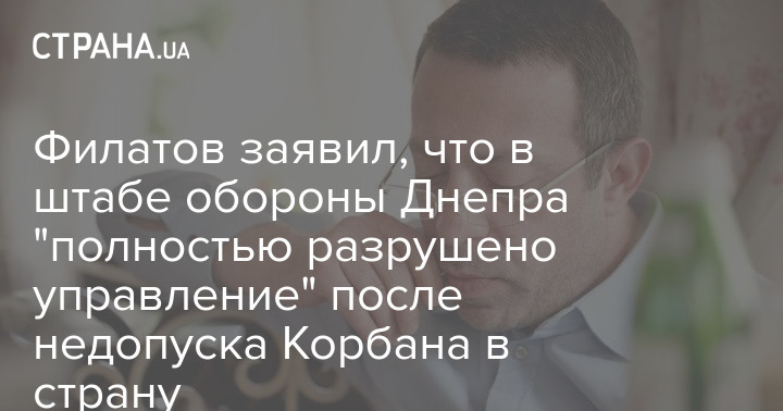 Филатов заявил, что в штабе обороны Днепра "полностью разрушено управление" после недопуска Корбана в страну