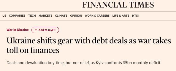 Западные аналитики опасаются, что из-за войны финансовые ресурсы Украины могут закончиться уже осенью