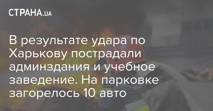 В результате удара по Харькову пострадали админздания и учебное заведение. На парковке загорелось 10 авто