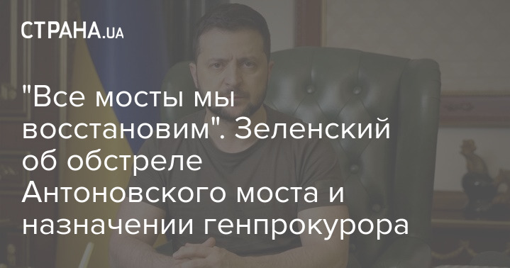 Президент Владимир Зеленский в своем вечернем видеообращении прокомментировал очередной обстрел Антоновского моста в Херсоне, назначения нового генпрокурора и другие ключевые темы прошедших суток войны.