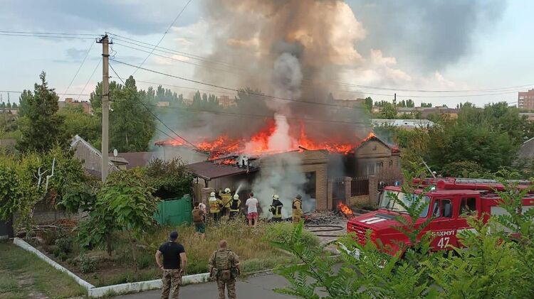 В Бахмуте пожары после обстрелов. Фото: Telegram/Павел Кириленко